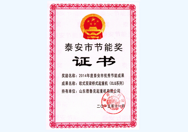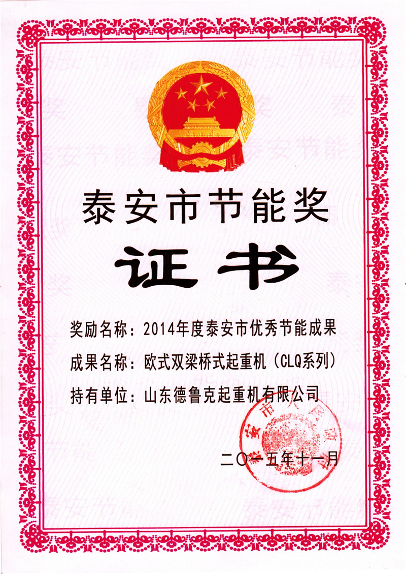 泰安市节能奖证书
