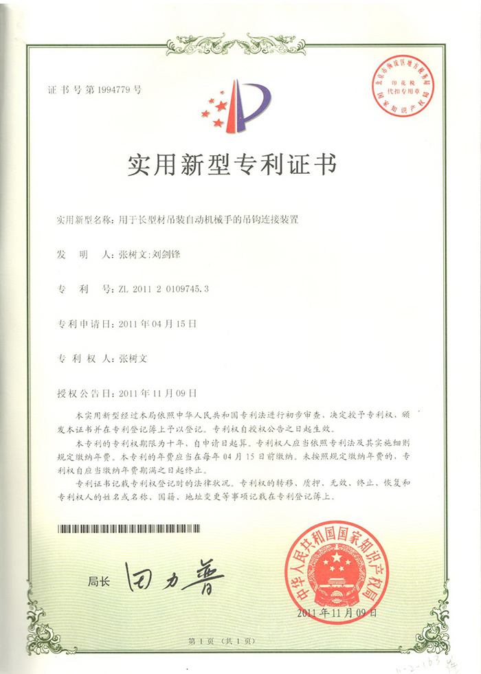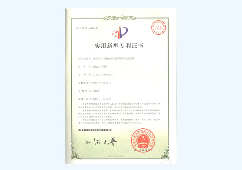 用于长型材吊装自动机械手的吊钩连接装置实用新型专利