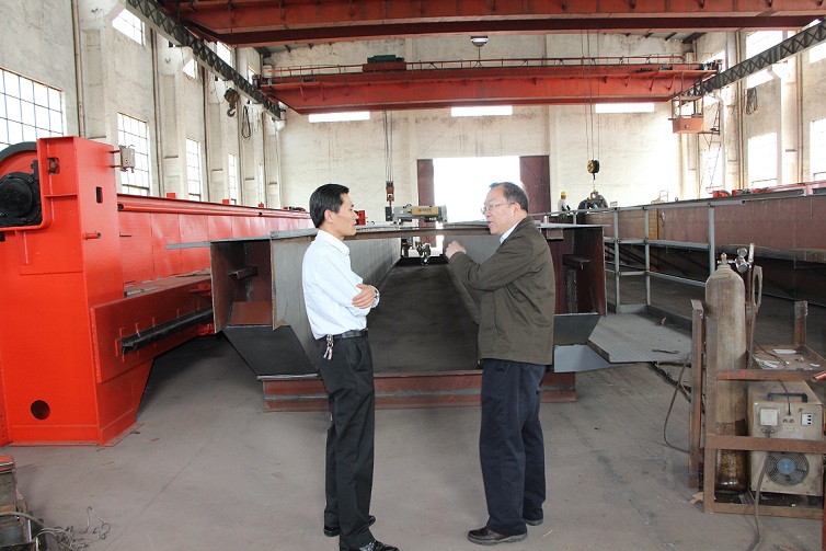 2015年4月18日国家质监局特种设备处领导尚洪受羊流镇政府邀请,来园区为企业做“羊流起重行业转型升级辅导会”期间,应张树文总经理邀请,来我公司现场调研轻量化起重机。