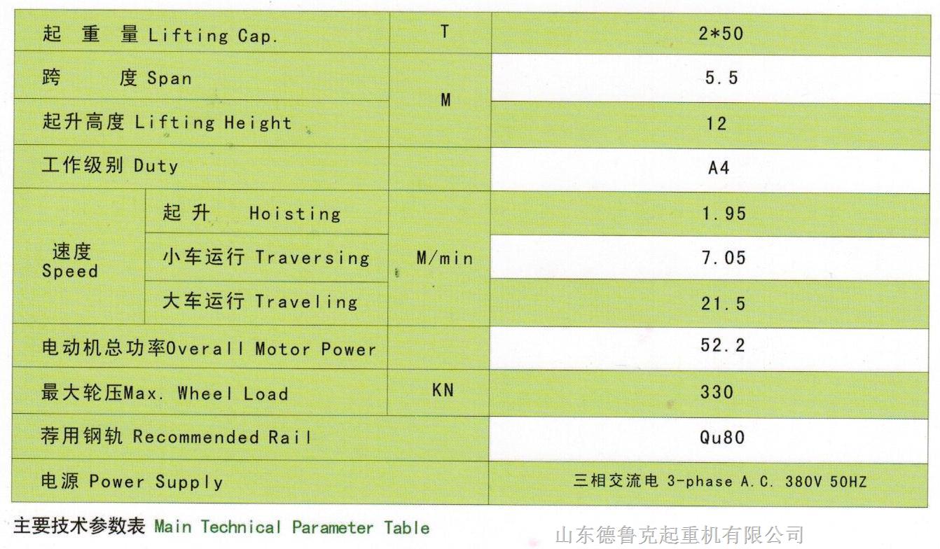 起重量大(最大1000t)、超载能力强、跨度较小(常为10-20m).起升高度大、配有自动化或智能化的水下液压挂梁,可采用各种先进的电气调速系统和PLC及网络控制系统,增加了使用的安全可靠性,防风系统采用自锁式夹轨器。